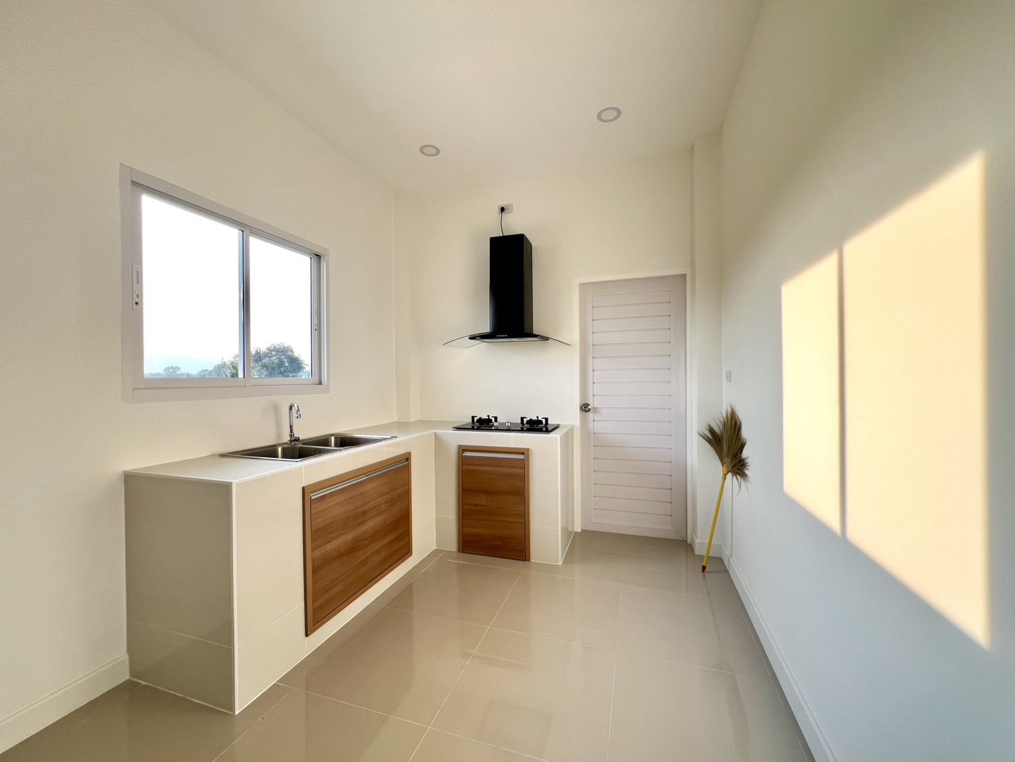 เคาน์เตอร์ครัวพร้อมบานซิงค์บานแก๊ส และอ่างล้างจาน