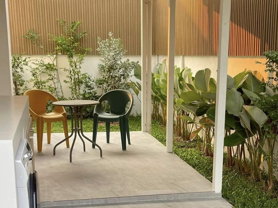 จัดสวนพร้อมโซนนั่งเล่นรับลมเย็นๆหลังบ้าน