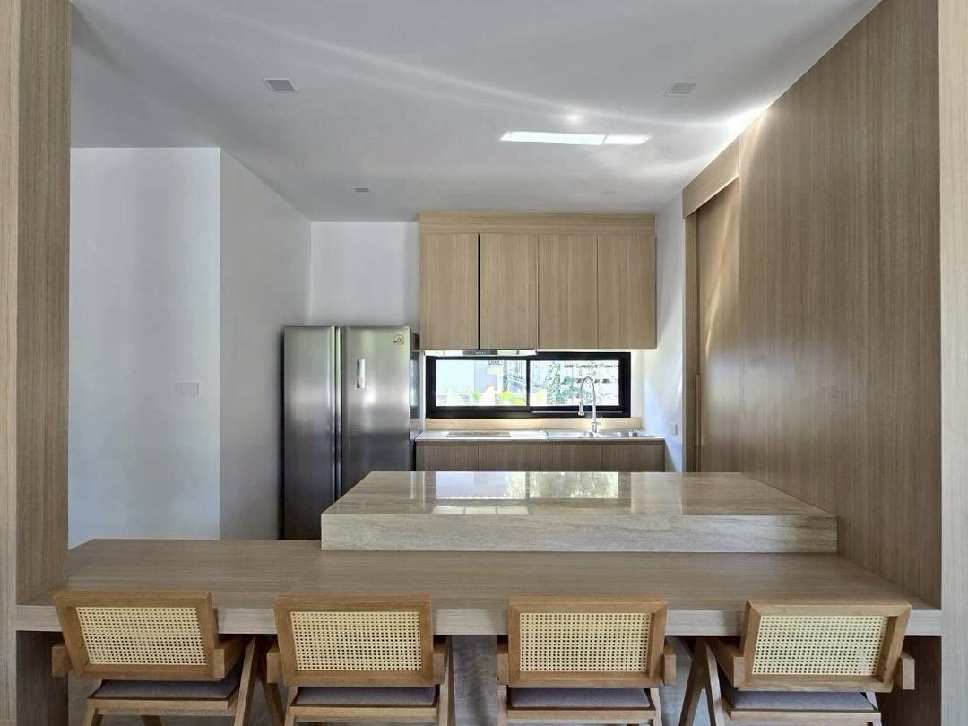 ไอแลนด์ครัวแบบ open space พร้อมตู้เย็น แอร์ 4 ตัว เครื่องทำน้ำอุ่น 3 เครื่อง ไมโครเวฟ เตาไฟฟ้า TV