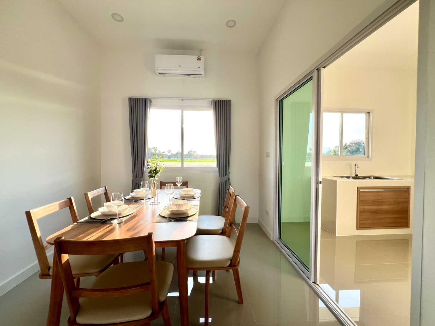 เคาน์เตอร์ครัวพร้อมบานซิงค์บานแก๊ส และอ่างล้างจาน